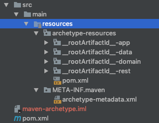 The second folder that we are interested in is META-INF/maven where the archetype-metadata.xml is. Its purpose is to copy resources and setup required parameters. Here we filter all the java and yml files we need from the archetype-resources. These will eventually be copied in the final module and all the parameters will be filled with values.