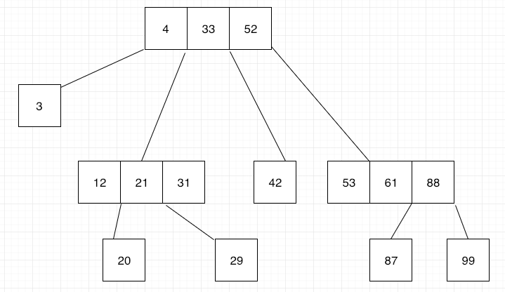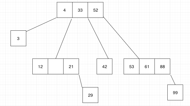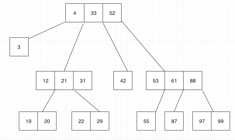 A B-tree starts with a root node, and within this node, you can store data records using their keys. These data records may have pointers to the actual value assigned to the key, or may have that value inside the data record. These records need to be found fast. To achieve this it’s important that the index keys in each node of a B-tree structure to be sorted.