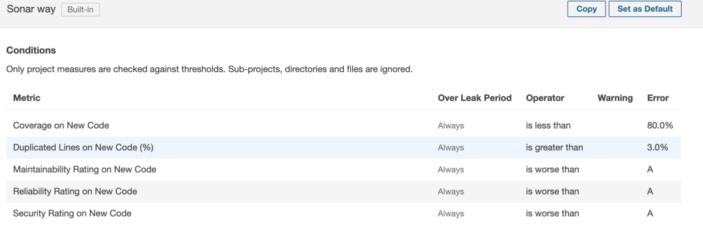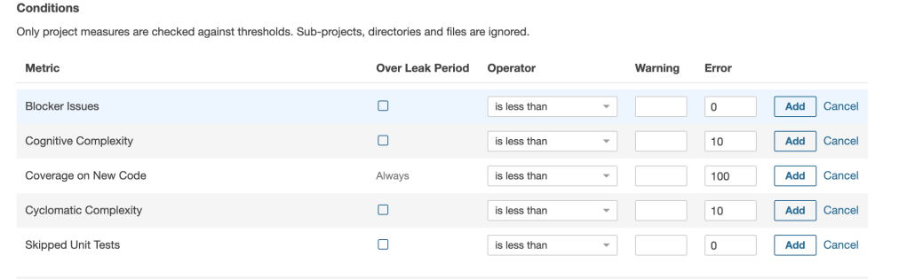 Also we don’t want blocker issues and any skipped unit tests. This analysis should be part of the project build stage.