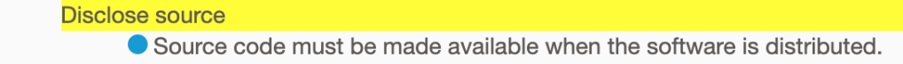 Obviously we don’t want to share our source code due to some license agreement that we agreed to without reading it. Here is a list with all the software licenses. Obviously the Disclose Source column is important.