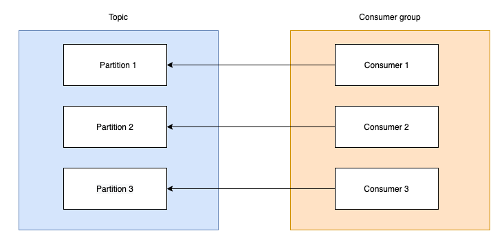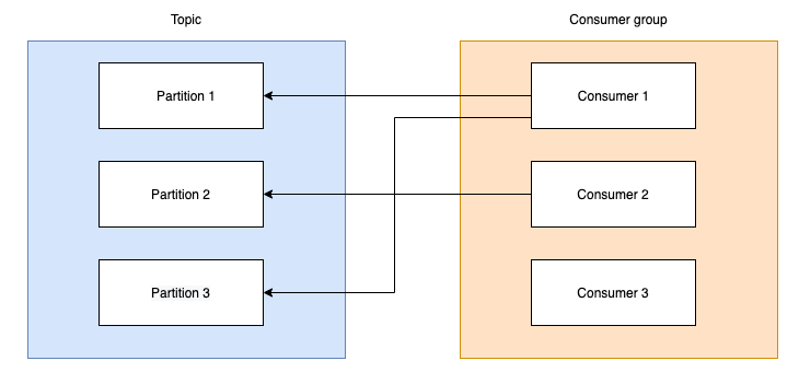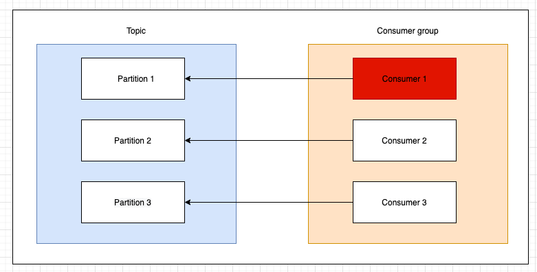 There is a tight relation between the number of partitions and number of consumers. In the above picture an ideal situation is described. If we have less consumers than partitions a consumer needs to read from multiple partitions affecting the throughput. If we have more consumers than partitions it means some of the consumers will be idle wasting processing power. Of course we cannot start with exactly the same number of partitions and consumers. Usually the number of partitions must be more than of consumers. Because we may not need that processing power at all times and we need to scale horizontally when needed. Hence we have the first situation when a rebalance is triggered.